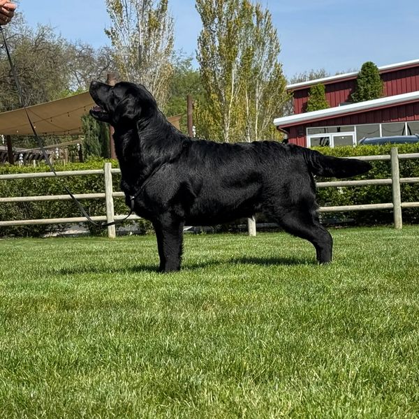 Rita is pure joy in motion. Her tail never stops wagging, and she greets every day with the same excitement she has for her favorite snacks. Nothing rattles her — she’s confident, kind, and always ready for fun. Around the house, she’s the perfect mix of easygoing and eager, great with the kids, and happiest when she’s part of the action. On top of her big personality, she’s built beautifully — a strong outline, thick coat, heavy muscle, and that classic dense Labrador tail we all love.